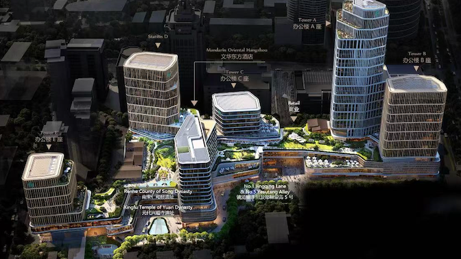 此外,项目还包含了五座甲级办公楼和浙江省首家文华东方酒店。一条逾万平方米的“空中绿堤”——全省首座城中花园,将商业空间、办公楼宇、酒店和自然景观巧妙串联。未来,人们可以从绿堤公园直接步入4楼的空中大堂,一边是现代化的繁华商业,一边是西湖的烟雨美景和城市的千年文脉,这种独特的体验,让人无限向往。